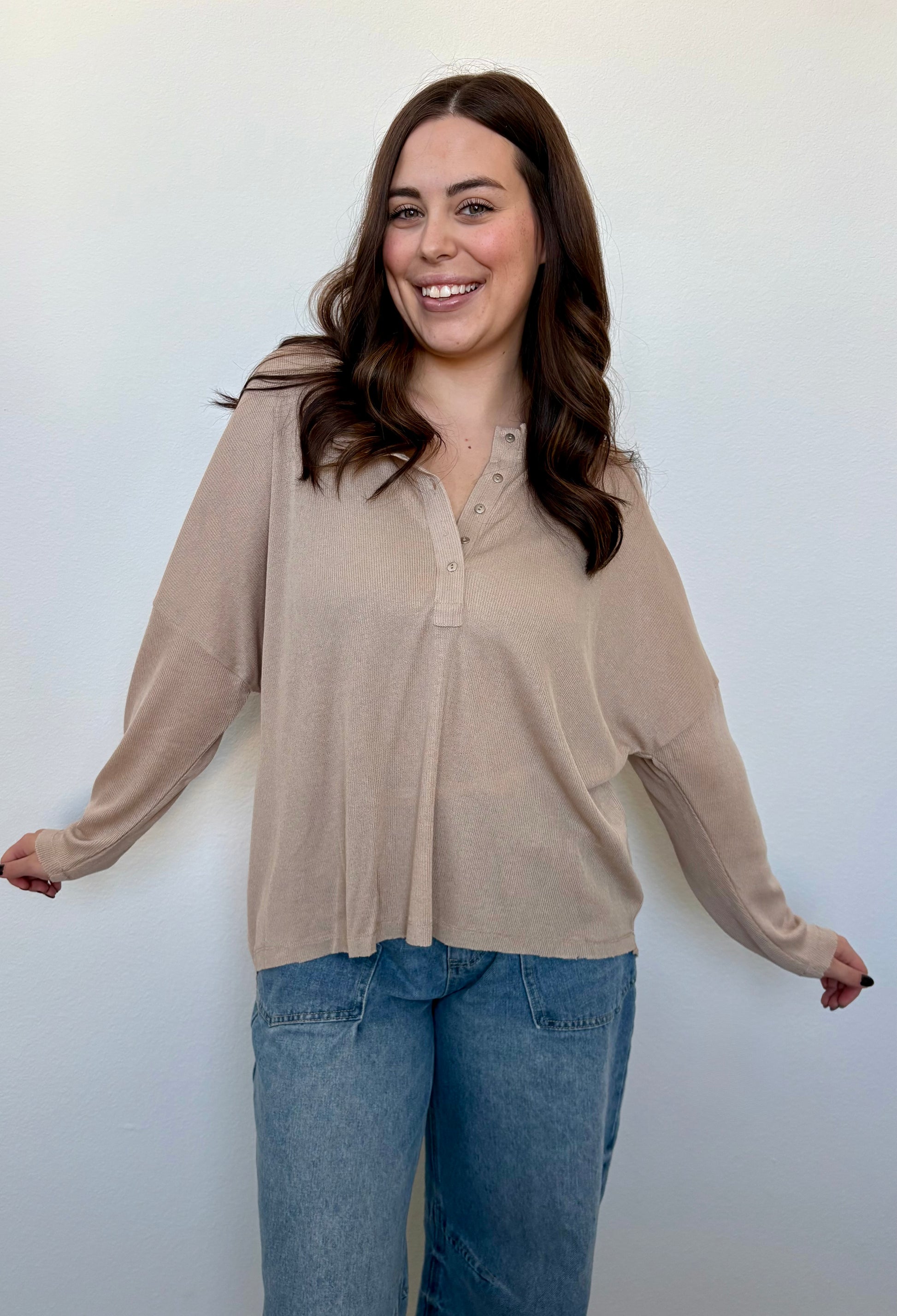 Effortless and endlessly wearable. The Oaklyn Henley features a relaxed fit, soft knit texture, and laid-back charm that makes it perfect for layering or lounging.